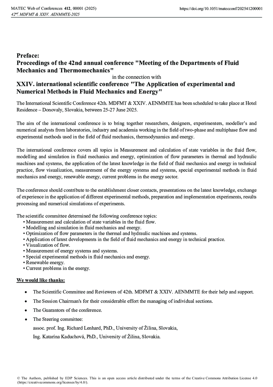 42nd. Annual Conference “Meeting of the Departments of Fluid Mechanics and Thermomechanics” in the connection with XXIV. International Scientific Conference “The Application of Experimental and Numerical Methods in Fluid Mechanics and Energy” (42nd. MDFMT & XXIV. AENMMTE-2025)